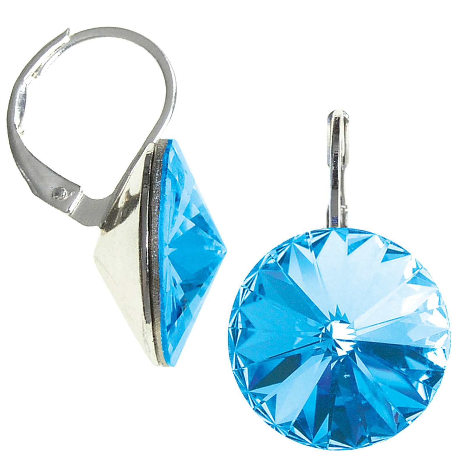 12mm Ohrringe mit Swarovski Kristall in der Farbe: Aquamarin, Blau