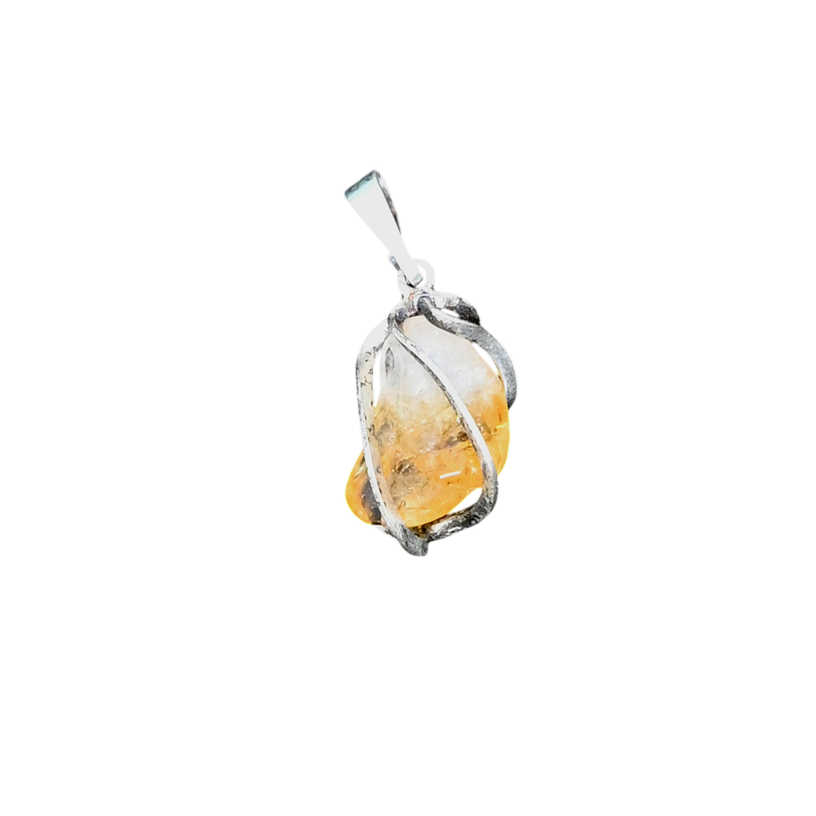 Citrin in sich um den Stein windende Fassung Angebliche Wirkung: Entgiftende Wirkung auf das Immunsystem und den Stoffwechsel Sternkreiszeichen: Zwillinge Chakra: Solarplexus-Chakra
