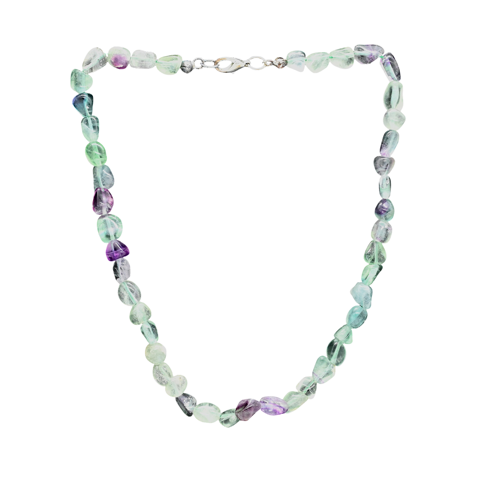 Erleben Sie den einzigartigen Charme der Florit Trommel Kette, die mit einer Länge von 45 cm einen Hauch von Farbe und Lebensfreude trägt. Diese Halskette, geprägt durch die natürliche Schönheit der Hauptsteine, ist ein Statement-Piece, das durch die Kombination verschiedener, gebohrter Edelsteine in einem Karabinerverschluss besticht. Jeder Stein, sorgfältig ausgewählt und behandelt, erzählt seine eigene Geschichte und verleiht dem Collier eine inspirierende Wirkung. Gefertigt in Deutschland. Die vielfältige Farbgestaltung der Trommelsteine, kombiniert mit ihrer natürlichen Beschaffenheit, macht jede Kette zu einem Unikat. Ob als Blickfang im Alltag oder als besonderes Geschenk – diese Kette ist ein Zeugnis von Stil und Bewusstsein.