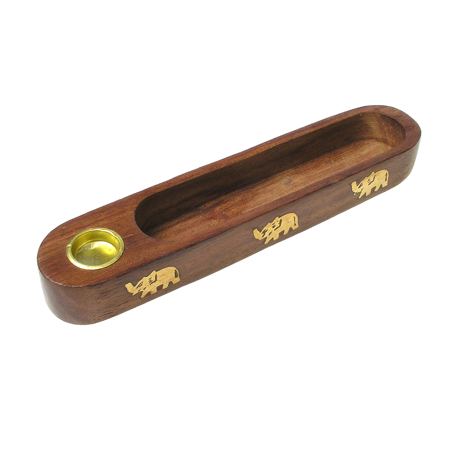 Holz Gefäß für Räucherkegel mit Messingelifanten