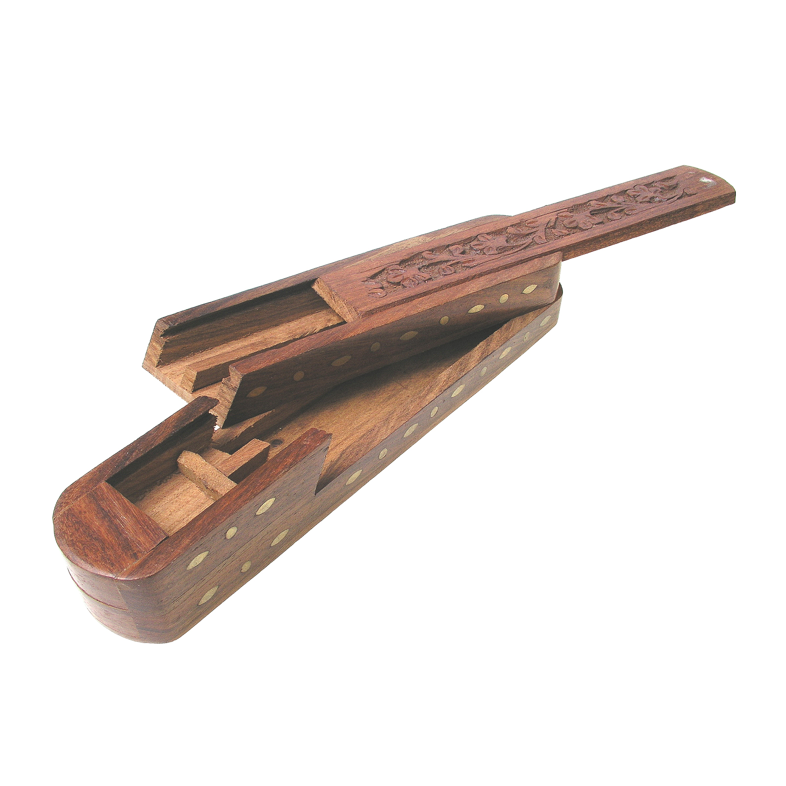 Holz Schachtel für Räucherkegel oder Räucherstäbe mit Messingeinlagen
