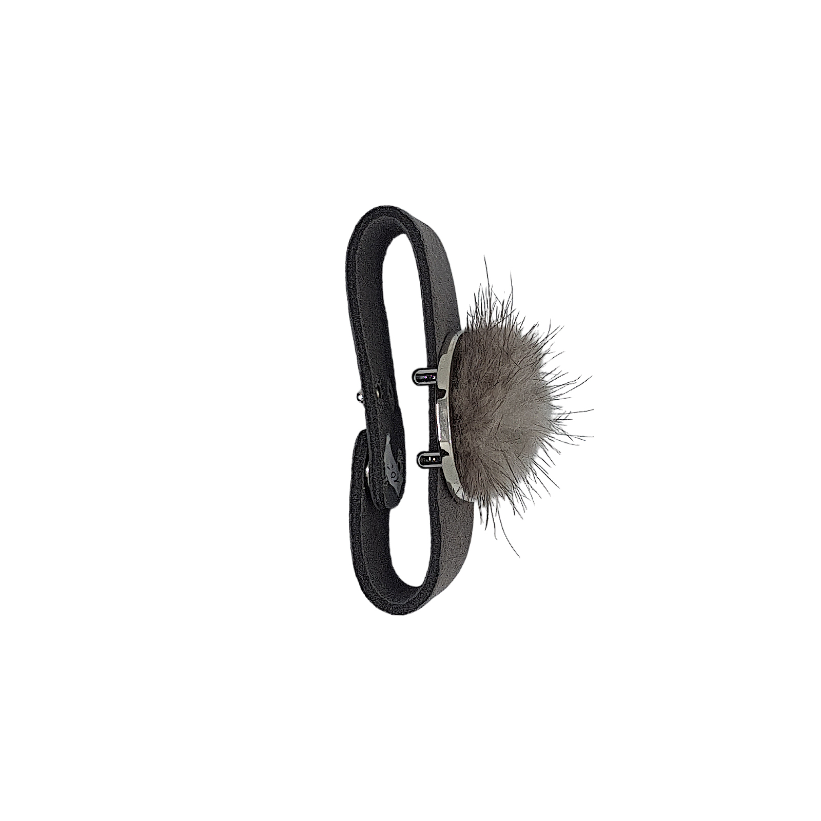 Leder Armband mit Puschel grau