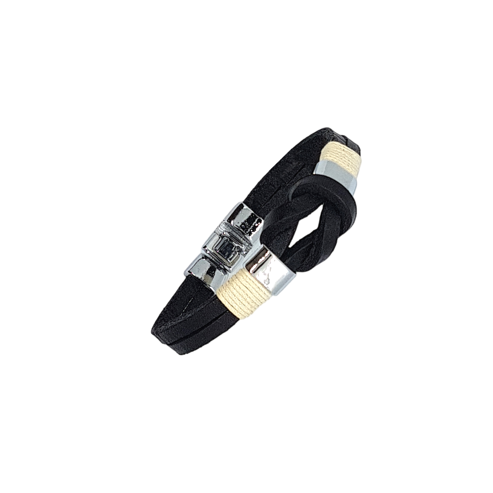 Leder Metall Armband Schwarz Weiß - Modeschmuck