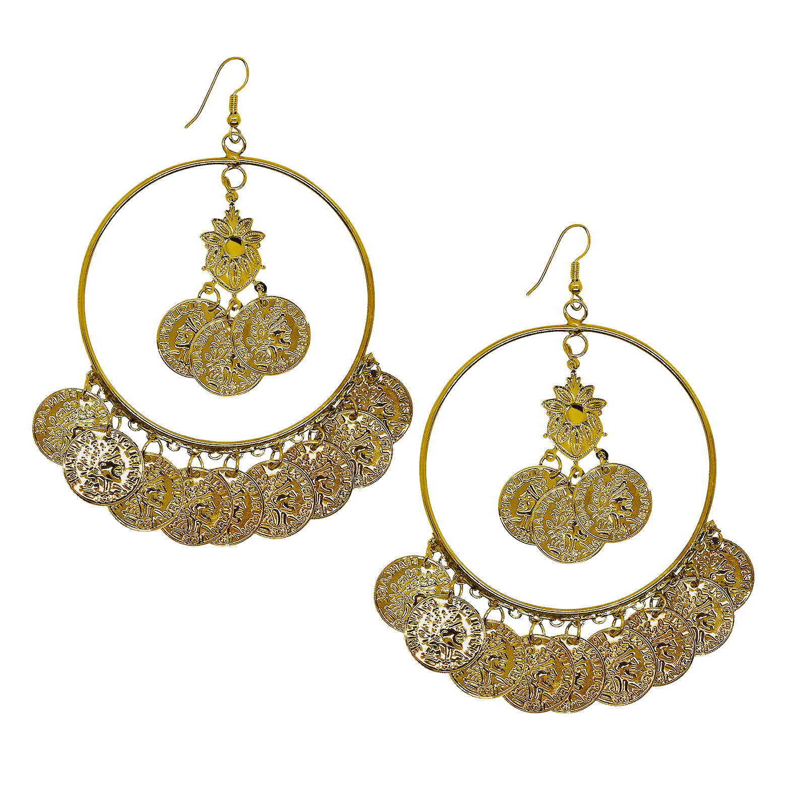Messingfarbige Ohrringe mit geprägten Scheinmünzen