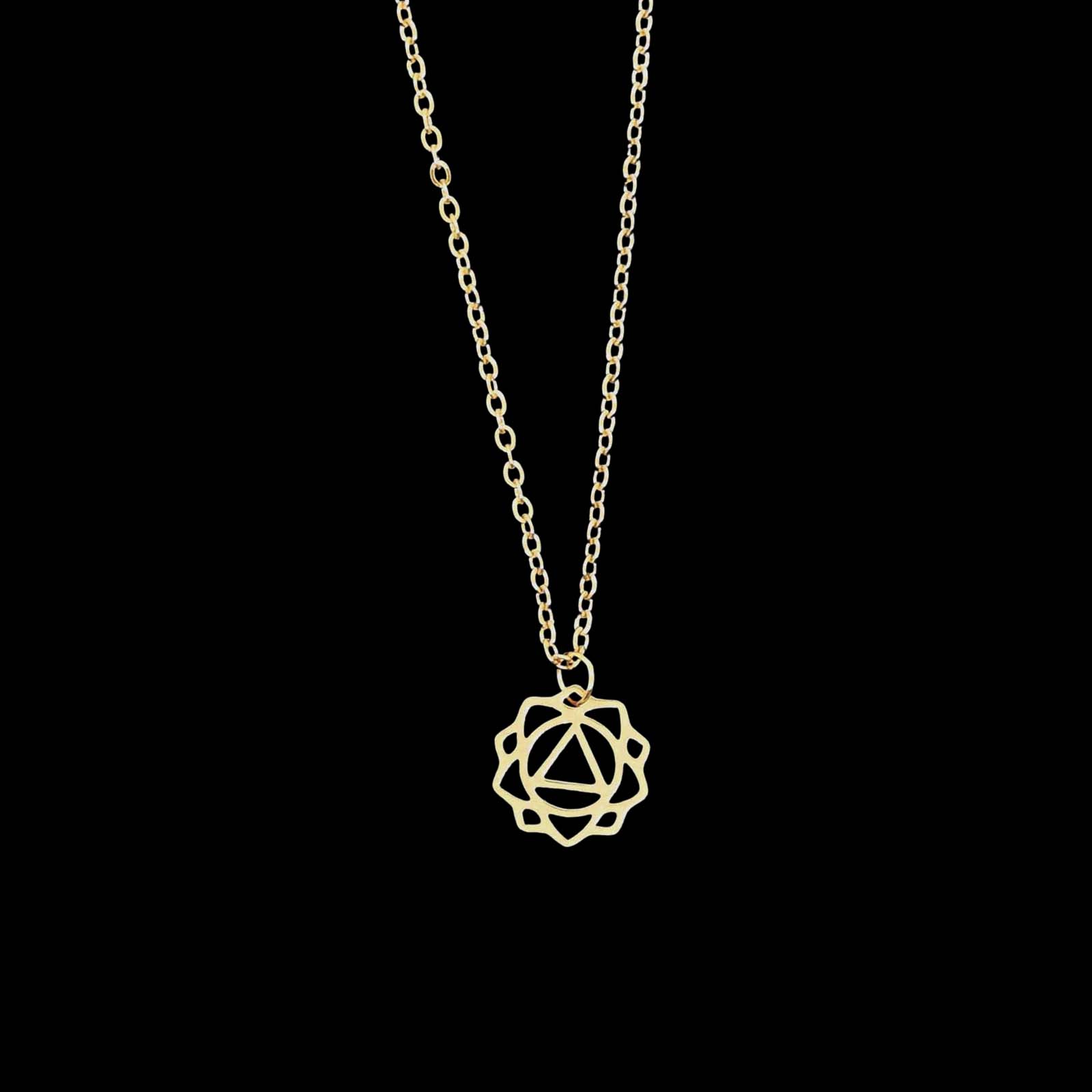 Vergoldete Edelstahlkette mit Dreieck im Kreis und angedeuteten Blütenrand als Symbol für die Dreifaltigkeit Kettenlänge: ca. 44cm Anhängerdurchmesser: ca. 1cm Gewicht: 2,6g