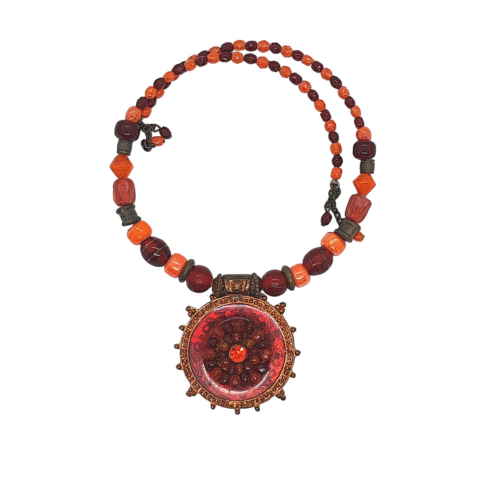 Modeschmuckhalsreif im Antikstyle in Rottönen und großen Anhänger