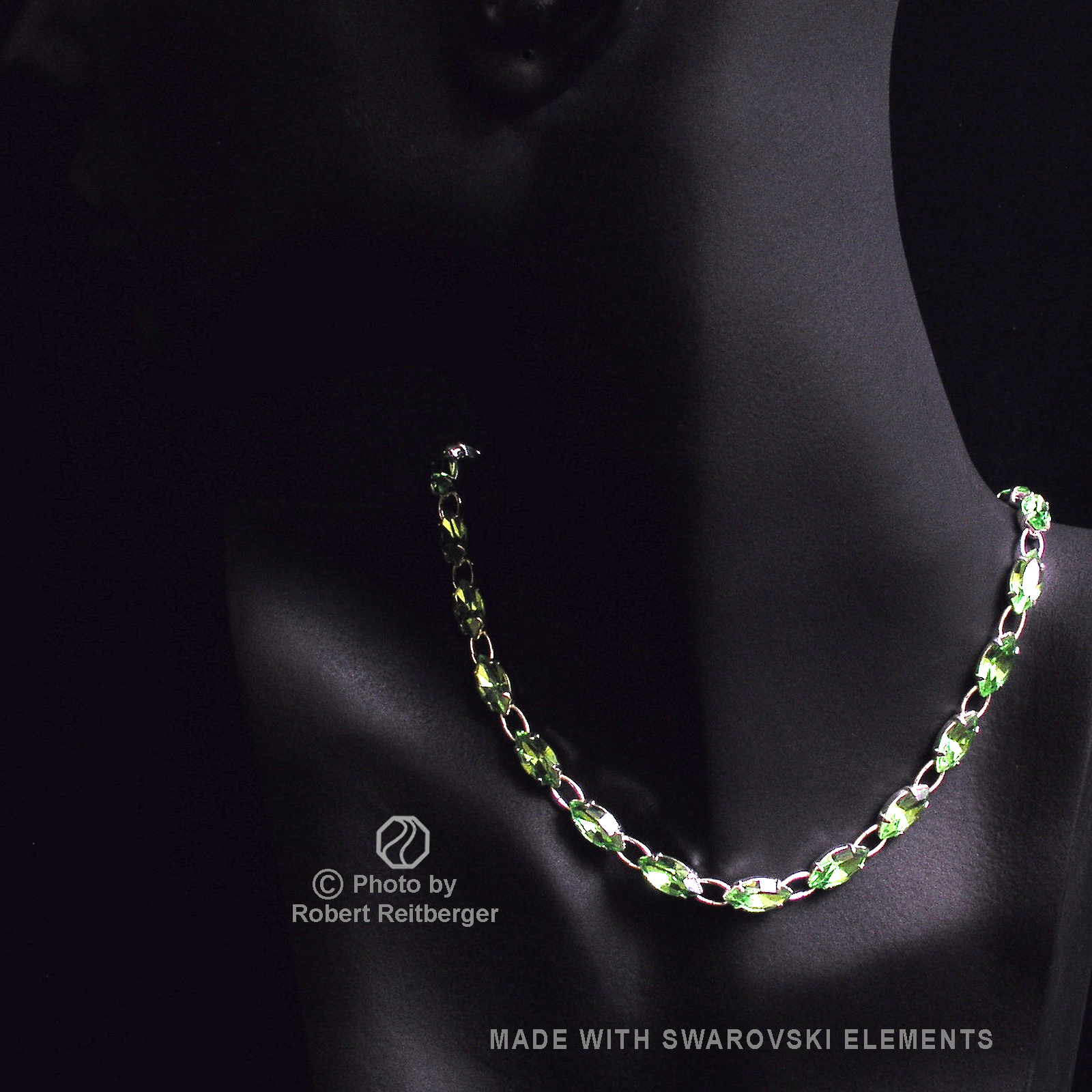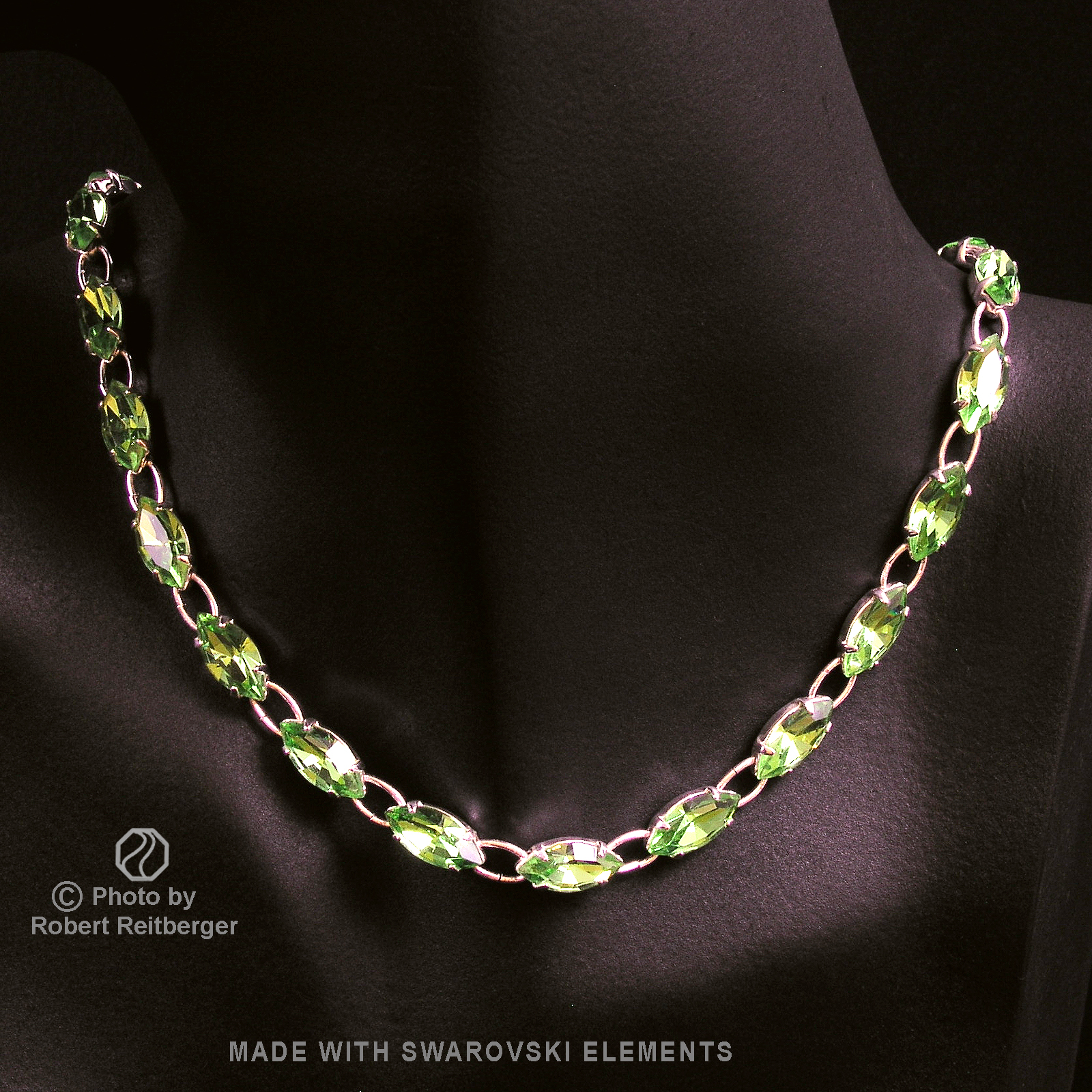 Versilberte Modeschmuck Navette Kette mit Swarovski Kristall aus unserer eigenen Werkstatt.