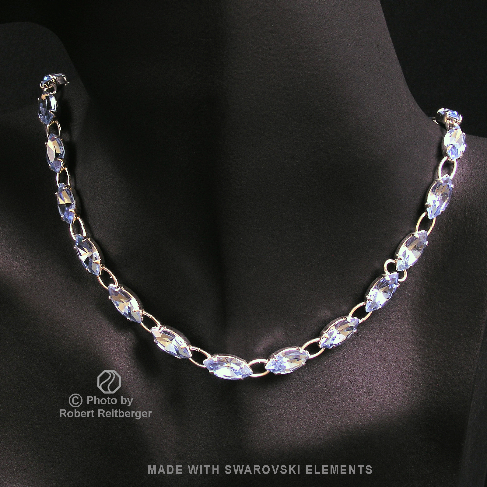 Versilberte Modeschmuck Navette Kette mit Swarovski Kristall aus unserer eigenen Werkstatt.