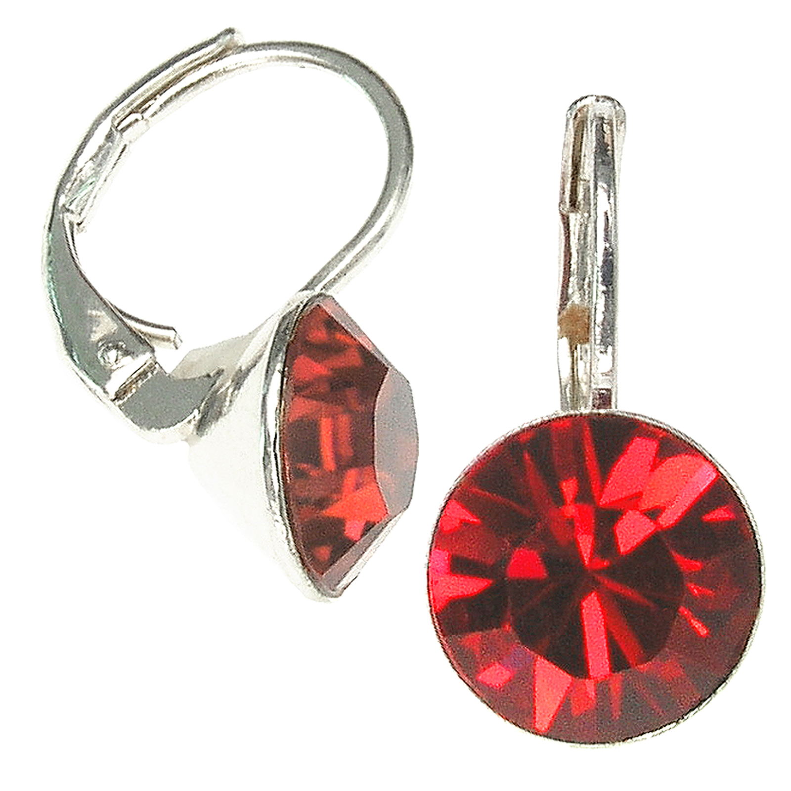 Versilberte Ohrringe mit Swarovski Kristall in der Farbe: Siam Hell, Rot