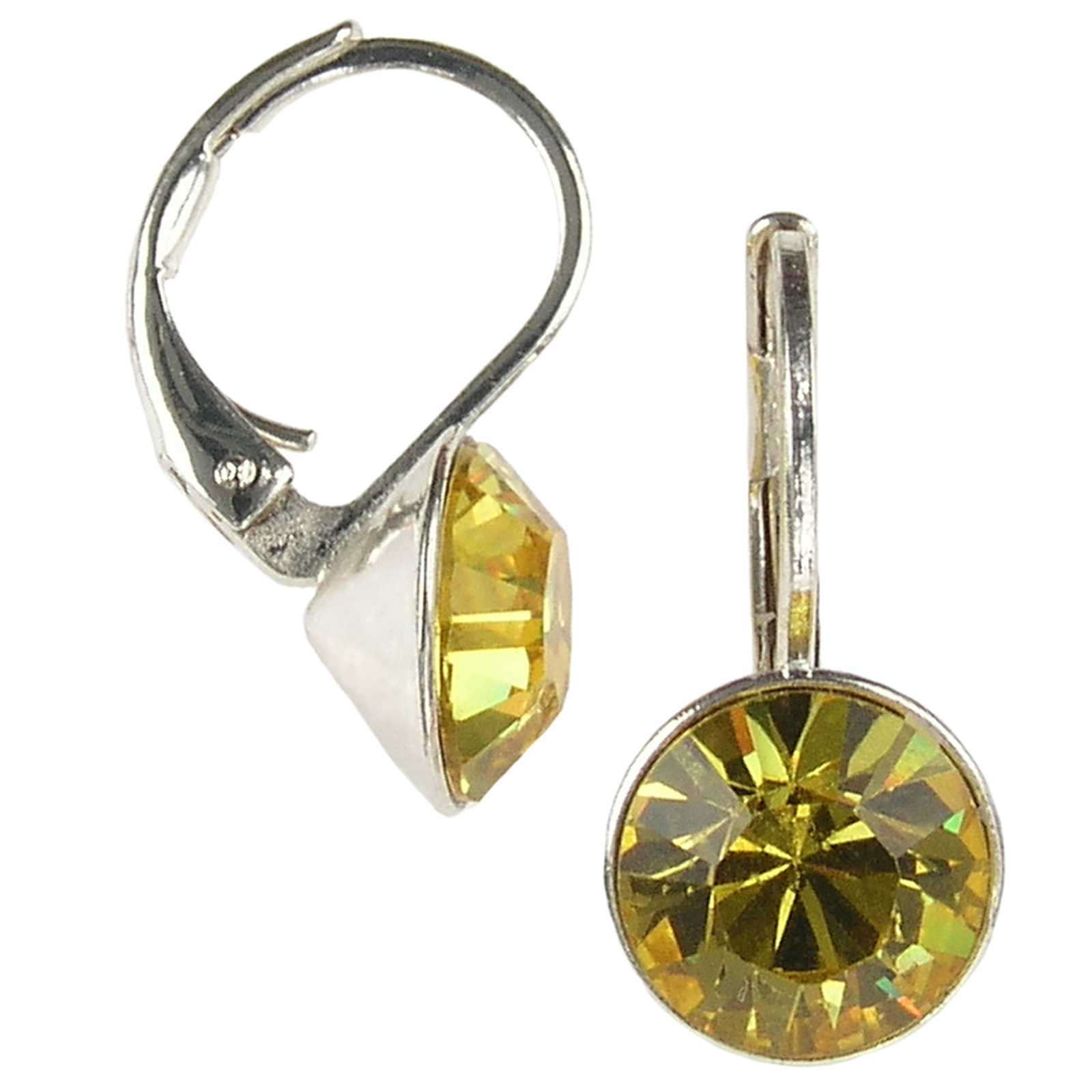 Versilberte Ohrringe mit Swarovski Kristall in der Farbe: Topas Hell, Gelb