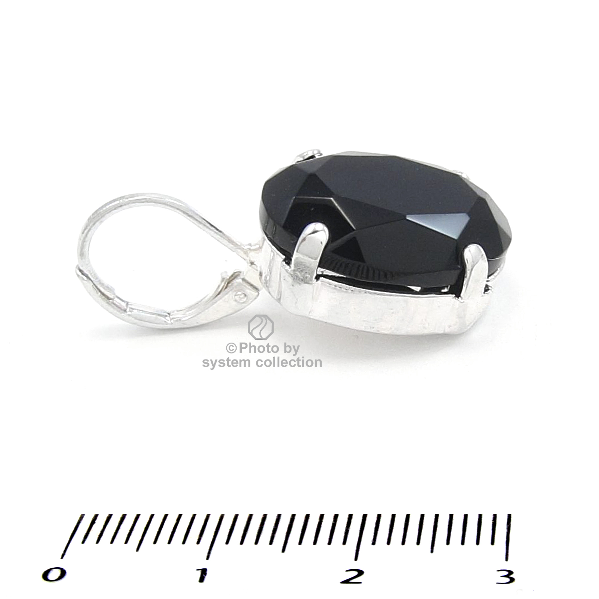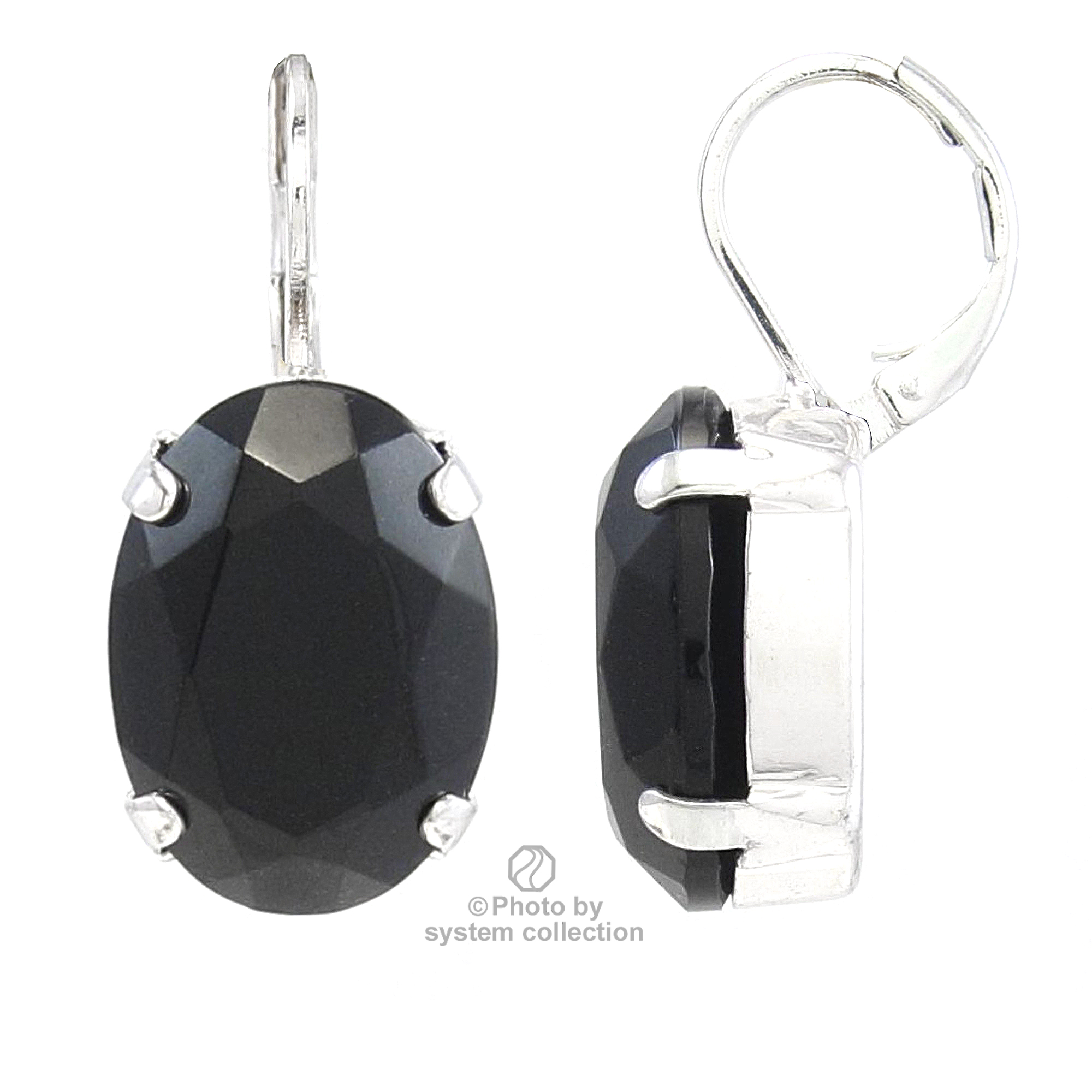 Antiallergene, nickelfreie Ohrhänger aus Tombak (eine hochwertige Messing-Legierung mit einem besonders hohen Kupferanteil) versilbert. Der tiefschwarze Stein aus Original Vintage Bohemian Glas ist oval und glitzert im klassischen Kissenschliff. Gesamtlänge ca. 30 mm.