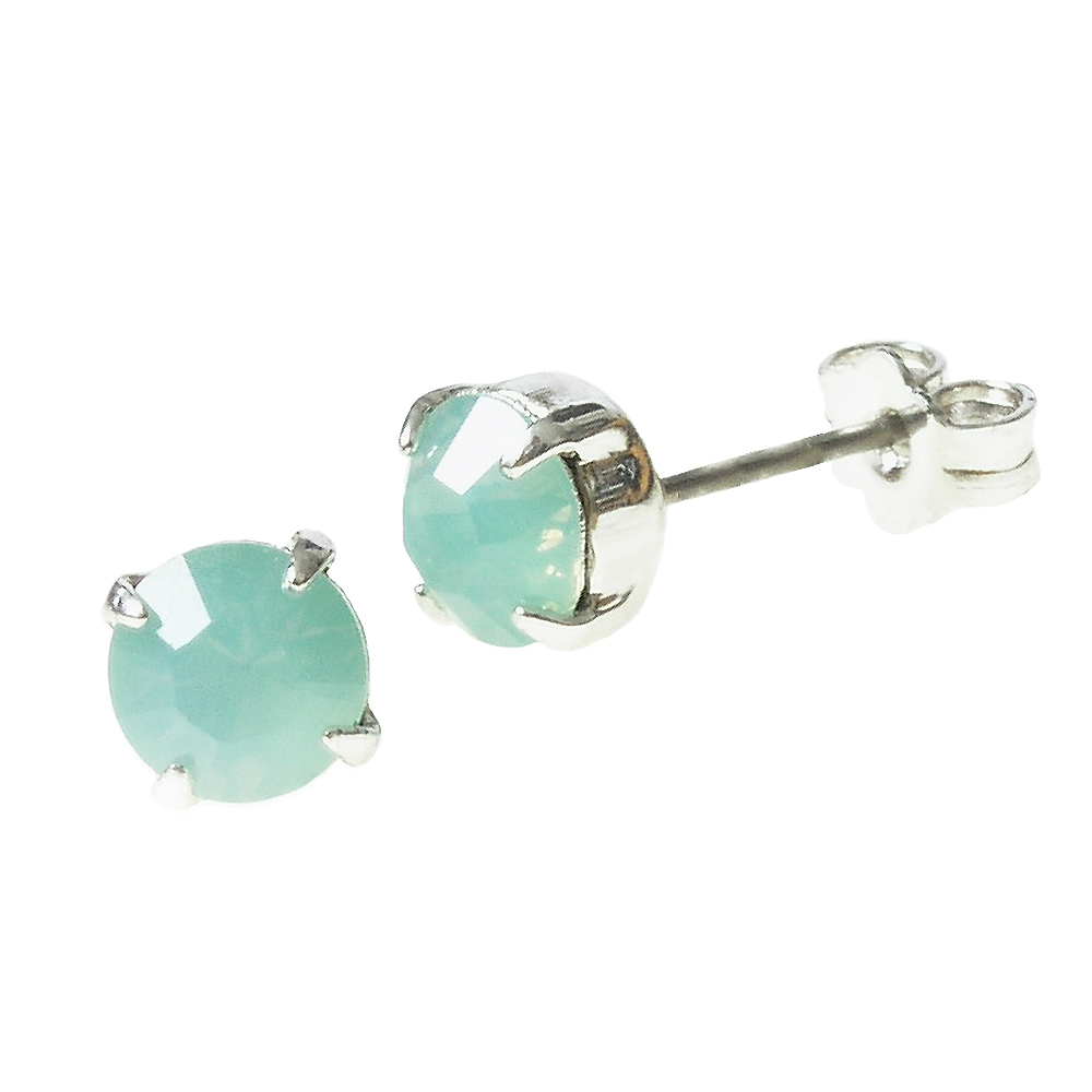 Wunderschöne versilberte Modeschmuckohrringe aus unserer eigenen Werkstatt mit Swarovski Kristall Pazifik Opal.